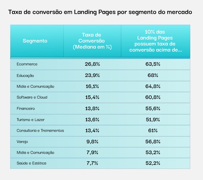 Um levantamento feito pela RD Station, empresa de tecnologia e desenvolvimento de softwares voltados para médias e pequenas empresas, mostrou que uma Landing Page gera quatro vezes mais conversões do que as páginas comuns de um site. O estudo mostrou que a média da taxa de conversão de uma página é de 19,9% e que apenas uma em cada 10 conseguem superar a marca de 50%. No total, 20 mil Landing Pages foram analisadas em dez setores e foi apontado que o e-commerce possui a maior média de taxa de conversão.
